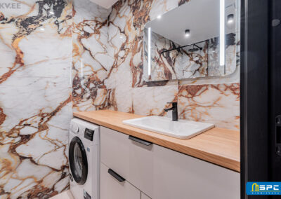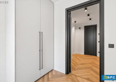 Remondi käigus kasutati ainult kvaliteetseid ja disainikaid materjale kõrgemast hinnaklassist: naturaalne tammeparkett, vannitoas 1200×600 plaadid, eritellimusel valmistatud sisseehitatud garderoobid ja köögimööbel.