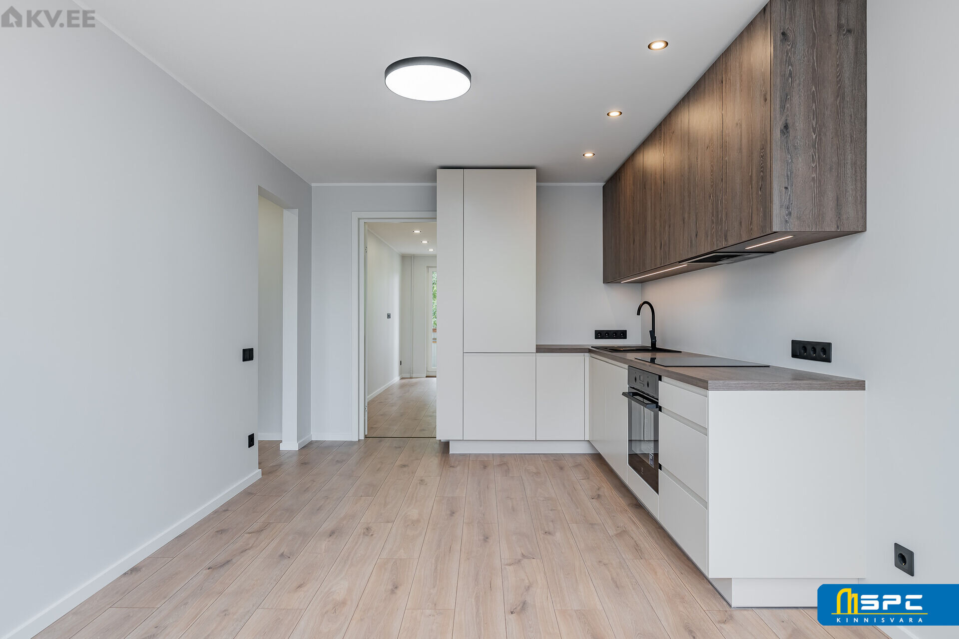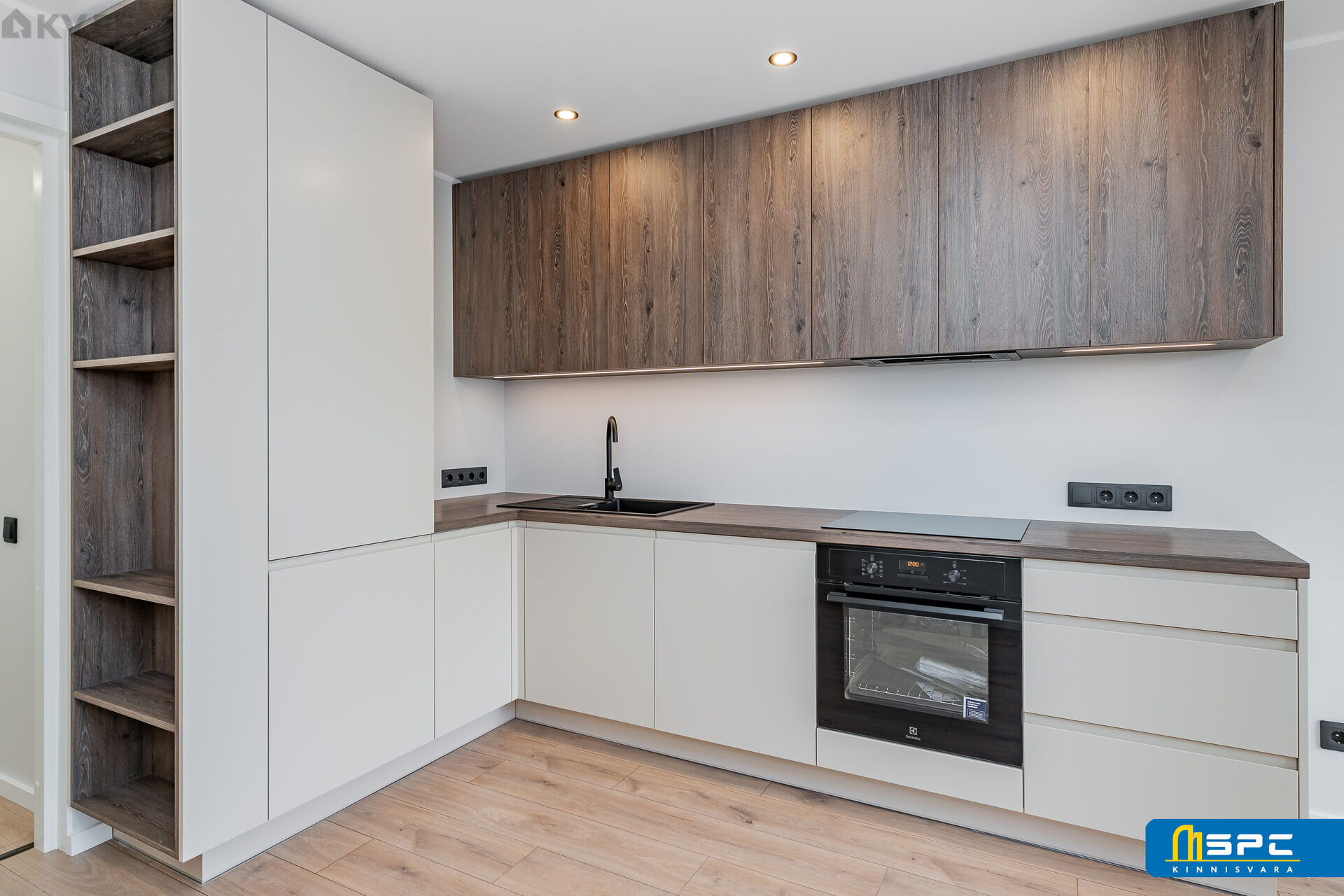 – Avar avatud köök-elutuba: stiilne eritellimus köögimööbel on varustatud kvaliteetse integreeritud Electrolux tehnikaga (ahi, induktsioonpliit, kubu, nõudepesumasin, külmik).