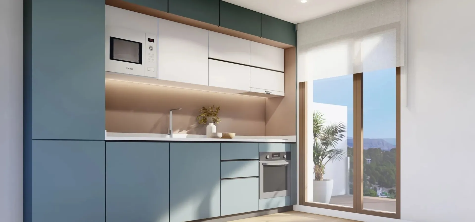 See võluv villakompleks ühendab endas kaasaegse disaini ja Vahemere olemuse, pakkudes rahulikku pelgupaika hingematvate vaadetega Benidormi ja Albiri lahtedele, mis on üle ujutatud sooja päikesevalgusega. Asudes kõigi mugavuste ja dünaamilise spordilinna La Nucía kõrval, pakub see enklaav tervislikku ja energilist elustiili.Elamu disain on hoolikalt kohandatud, et peegeldada kaasaegset esteetikat Vahemere hõnguga, ühendades Marina traditsioonilised valged toonid sooja ja kutsuva värvipaletiga. Innovatsioon ja traditsioon põimuvad harmooniliselt, pakkudes tipptasemel lahendusi vastupidavate materjalidega, mis tagavad usaldusväärse toimimise pikaks ajaks.Maksimaalse mugavuse ja lõõgastuse tagamiseks loodud kodud on täis loomulikku valgust ja sulanduvad lopsaka kohaliku taimestikuga, kutsudes teid alati nautima väljas olemist. Jätkusuutlikkuse põhimõtteid on rakendatud, et tagada tõhus energia- ja veetarbimine, samuti kliimaseadmete, ventilatsiooni- ja niisutussüsteemide optimaalne funktsionaalsus.Tänu erinevatele suurustele ja konfiguratsioonidele sobivad need villad ideaalselt neile, kes otsivad rohkem ruumi tööks või pere pisimatele mängimiseks. Selles kompleksis leiate kodu, mis on loodud kõigi teie vajaduste rahuldamiseks.See on mugavuse ja stiili oaas igas kodu detailis. Alates panoraamvaadetega terrassidest kuni privaatse aiaga, mis ühendub ühiste aladega – iga ruum on loodud meelte rõõmustamiseks ja suhtlemise soodustamiseks.Interjööre kaunistab elegantne ja funktsionaalne viimistlus, kus kvaliteet on püsiv. Vannitoad pakuvad luksust ja mugavust tänu kaasaegsetele dušialustele ja tipptasemel sisustusele.Täielikult varustatud köök kutsub teid avastama kulinaarset kunsti tänu oma ergonoomilisele ja kaasaegsele disainile.Päikeseterrassid ja aiad on koht, kus saab lõõgastuda ja nautida värsket õhku, samas kui ühiskondlikud alad pakuvad elavat atmosfääri puhkealade ja rohealadega. See koht on palju enamat kui kodu; see on kõrgendatud elustiil, kus iga detail on hoolikalt läbi mõeldud naudingu ja heaolu tagamiseks.