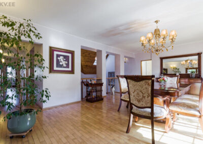 Kvaliteetselt ehitutud 4 korrus maja 410.80 m² (punane tellis), väga huvitava ja loogilise planeeringuga Tabasalus. Kinnistu 1500 m². Ehitusaasta 1994 a. Gaasiküttega, millele aitavad kaasa täiskõrguses soklikorrus ja paksud, soojustatud kiviseinad. Majas leidub kõik mugavaks eluviisiks kohane, kino ja spordisaal, puukerisega saun koos basseiniga, suur terrass koos varjealusega + avar rõdu teisel korrusel, kaks kabinetti, kaminaga hall, kõrgete lagedega avarad magamistoad, eraldi suve- ja talveriiete garerob, suure söögisaaliga köök, milles ei puudu ka arhailine puupliit. Mahukas garaaž 2-le autole. Maja on sisustatud klassikalises stiilis, maitsekalt ning kalli mööbliga. Lisaks kinnistul on grillmaja ning kasvuhoone. Aed on väga privaatne kuna, krunt piirneb rohealaga, naabrid on ainult külgedel. Ümbruses eramud, asfalteeritud teed, tänavavalgustus, teed ka talvel lumest puhtad. Tabasalu kauplused 300m kaugusel.