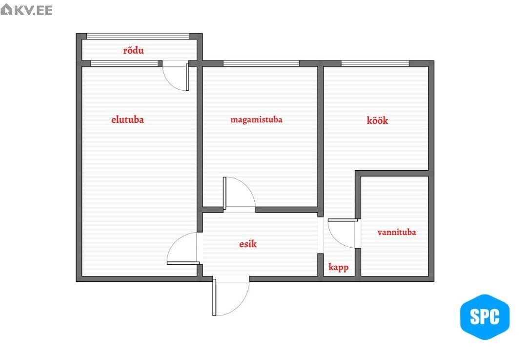Korter sisaldab: esik koos garderoobiga; elutuba koos rõduga; magamistuba; köök; wc ja vannituba eraldi.