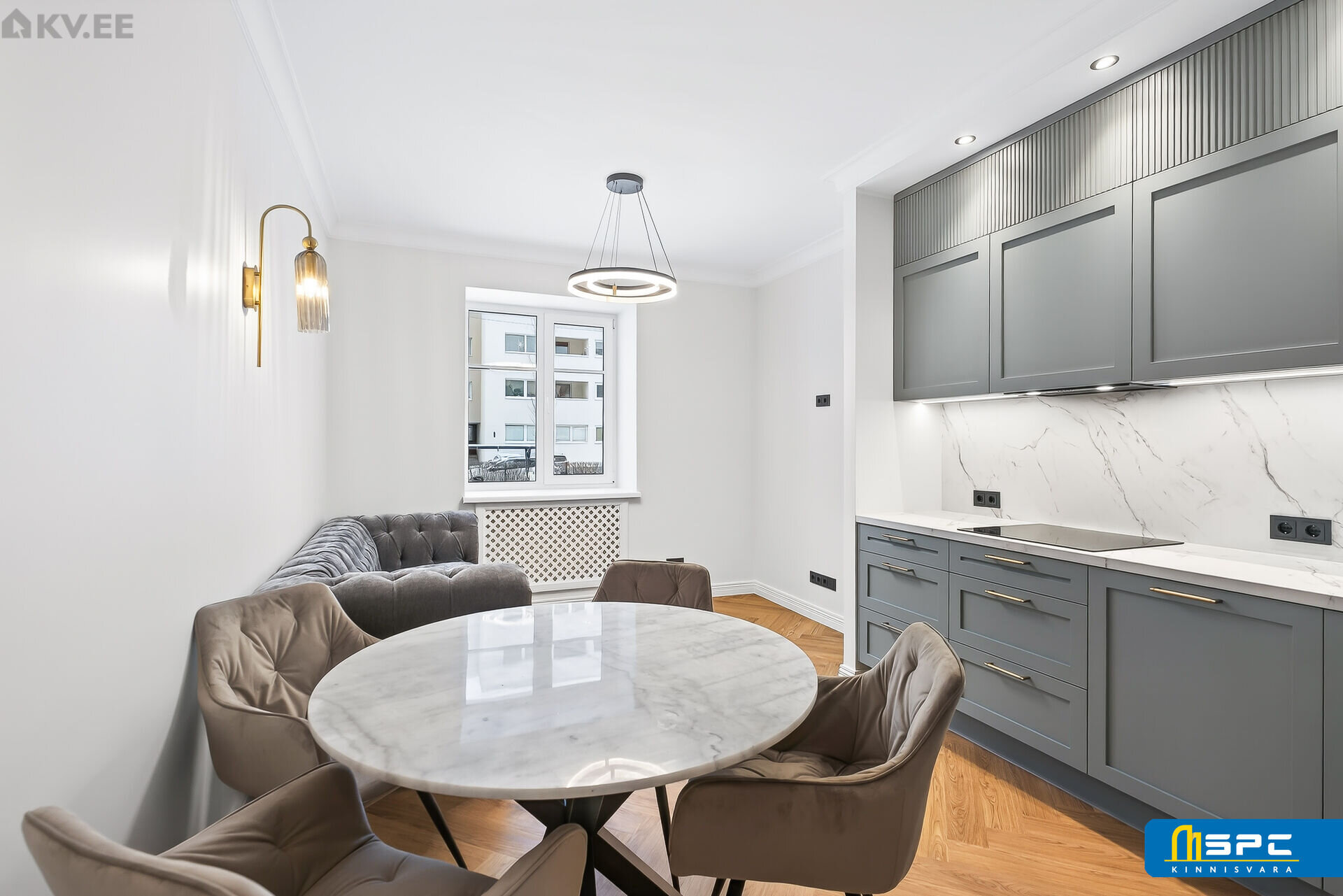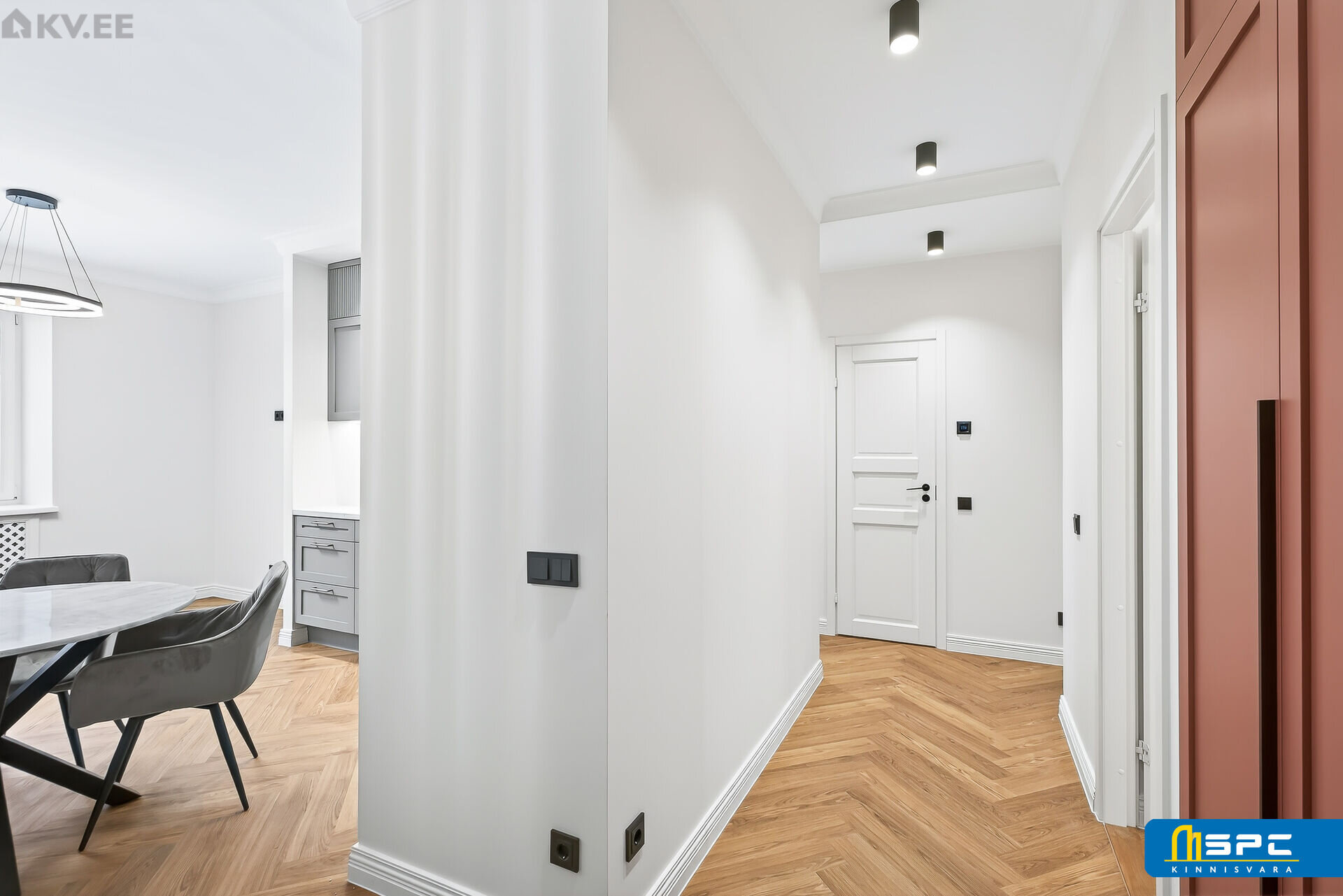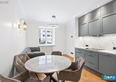 — Все детали квартиры выполнены из высококачественных и дорогих материалов: натуральный дубовый паркет классической раскладки; настенная и напольная плитка размером 1200×600; встроенные смесители и унитаз; декоративные молдинги и изготовленная на заказ встроенная мебель из высококачественных материалов!